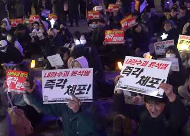 시민들은 ‘비상계엄 사태’를 자행한 윤 대통령에 대한 탄핵과 성역 없는 수사를 촉구하고, 탄핵소추안 표결에 불참한 국민의힘을 성토했다.