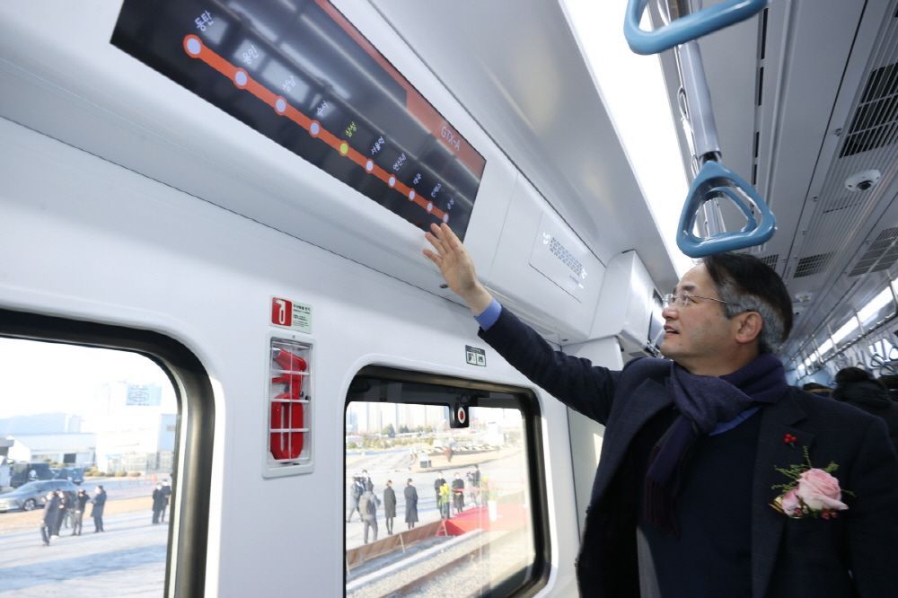 이동환 고양특례시장이 GTX-A 출고식에 참석해 내부를 살펴보는 모습. 고양특례시 제공