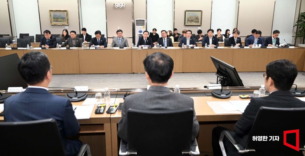 야 3당 소속 국회 기재위원들이 10일 긴급 경제 상황 현장점검 을 위해 한국은행을 방문, 이창용 한국은행 총재 등 임직원과의 회의에서 정태호 기획재정위원회 간사가 모두발언을 하고 있다. (공동취재)