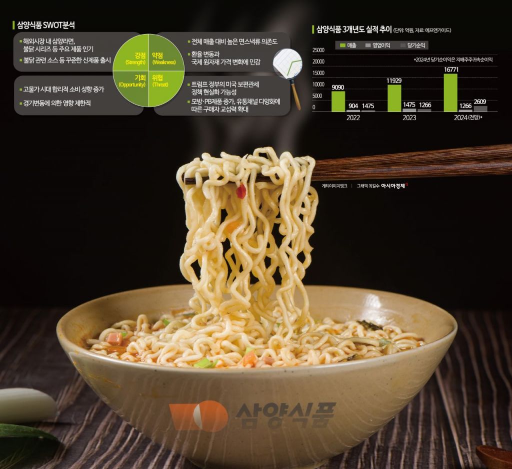 탄핵정국 쇼크로 국장이 흔들린 가운데 식품기업들이 방어주로 떠올랐다. 그중에서도 해외 시장에서 'K-라면 신화'를 써 내려가는 삼양식품이 선봉장 역할을 하고 있다. 증권가에서는 증시 불확실성이 커진 가운데 "믿음의 삼양식품"이라며 식품업계 최선호주로 꼽기도 했다. 비결은 '단가 상승'과 '판매량 증가', '구매력 강화' 등 3가지 요소가 맞물린 결과다.