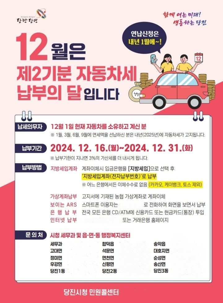 2024 제2기분 자동차세 납부 홍보용 전단지. /당진시