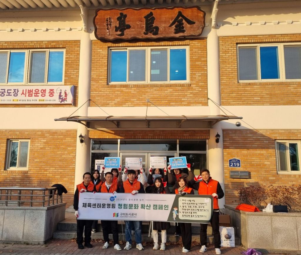 경북 구미도시공사 체육센터운영팀은 지난 9일 동락공원 일대에서 ‘함께해요, 청렴플로깅’ 캠페인을 실시했다.