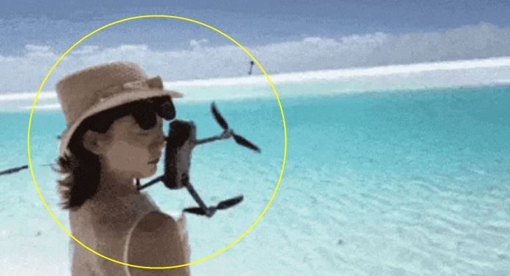 중국의 몰디브라 불리는 유명 관광지에서 사진을 찍으려던 관광객이 드론에 얼굴을 부딪치는 사고를 당했다.