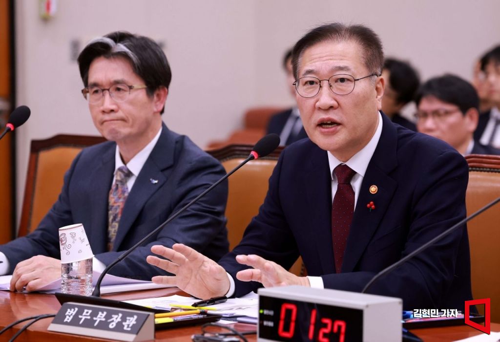 박성재 법무부 장관이 9일 국회에서 비상계엄 사태와 관련해 윤석열 대통령 등의 내란 혐의를 규명할 상설특검 수사요구안 등을 심사ㆍ의결하기 위해 열린 법제사법위원회 전체회의에서 발언하고 있다. 김현민 기자