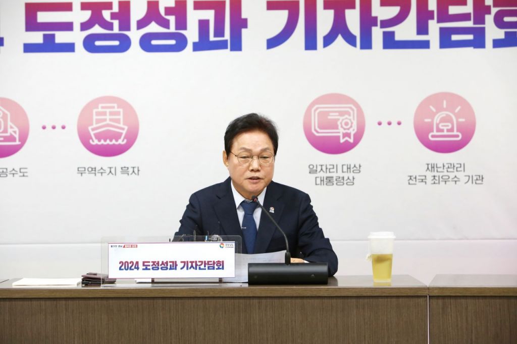 박완수 경남도지사가 2024 도정성과 발표 기자간담회에서 질문에 답하고 있다. 이세령 기자