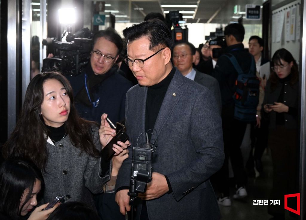 이양수 국민의힘 정국 안정화 태스크포스(TF) 위원장이 10일 국회에서 열린 비상의원총회에 참석하기 위해 이동하며 취재진의 질문을 받고 있다. 김현민 기자