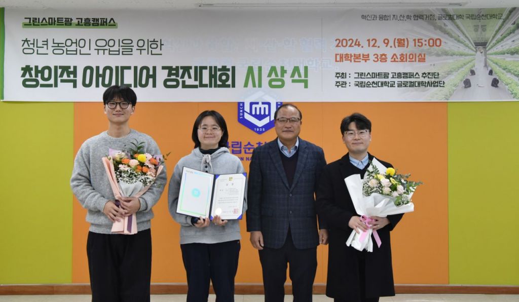 순천대학교(총장 이병운)는 농촌 사회의 소멸위기 극복, 청년층 농촌 정착 문제 해결과 농촌사회 성공모델 제시를 위한 ‘2024 그린스마트팜 청년 농입인 유입을 위한 창의적 아이디어 경진대회’를 개최했다고 11일 밝혔다.