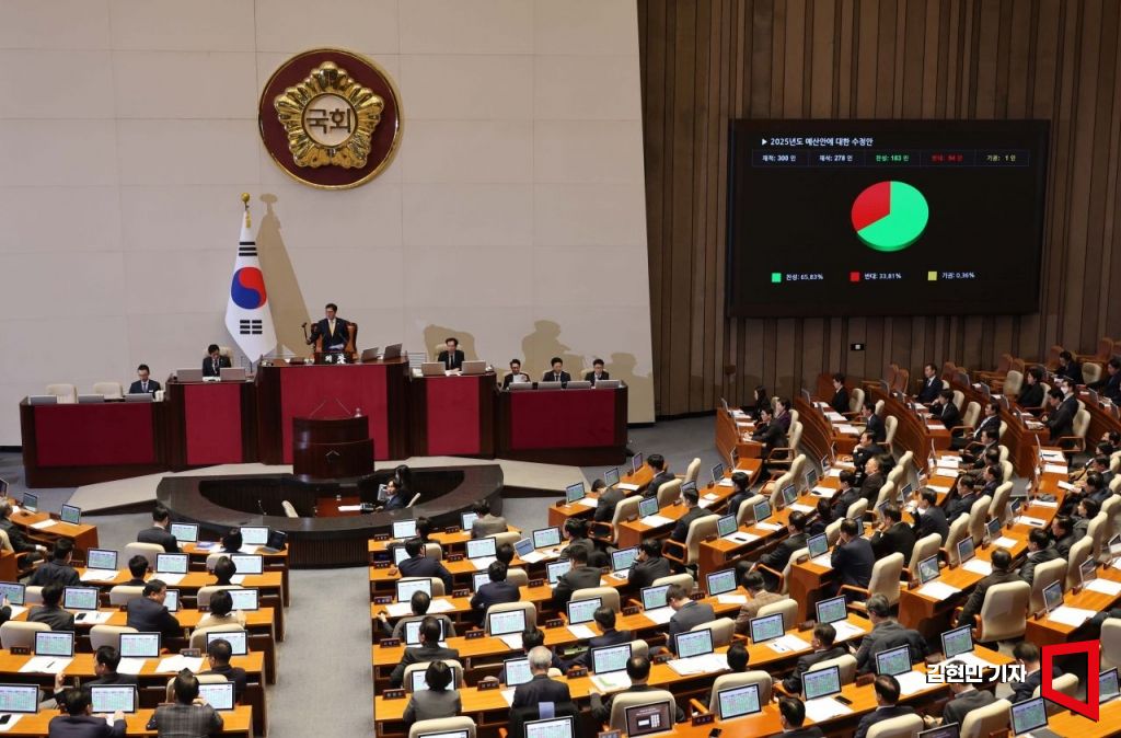 10일 국회에서 열린 본회의에서 2025 예산안에 대한 수정안이 가결되고 있다. 김현민 기자