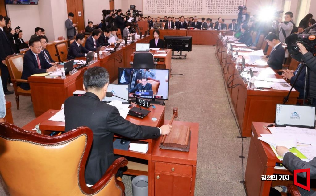 11일 국회 법제사법위원회에서 열린 12·3 윤석열 내란 사태 관련 현안질의에서 정청래 위원장이 의사봉을 두드리고 있다.