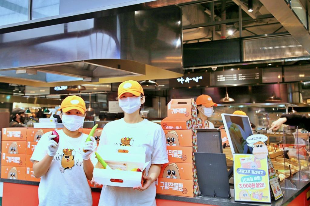 광주신세계 본관 지하 1층에 정남미명과 팝업스토어에서 직원들이 구황작물빵을 선보이고 있다. 광주신세계 제공