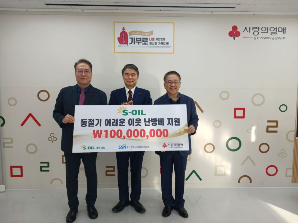 S-OIL 울산공장은 11일 울산사회복지공동모금회에 난방유 지원 기부금 1억원을 전달했다. S-OIL 제공