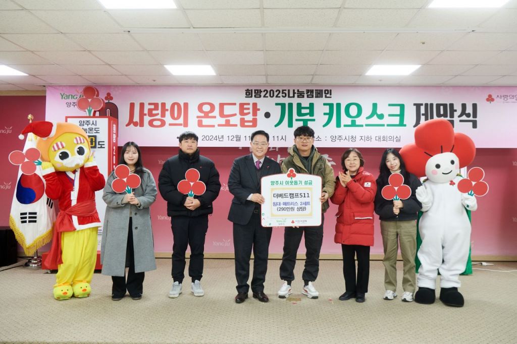 경기 양주시(시장 강수현)가 11일 시청 대회의실에서 ‘희망2025나눔캠페인 사랑의 온도탑·기부 키오스크 제막식’을 열었다고 밝혔다.