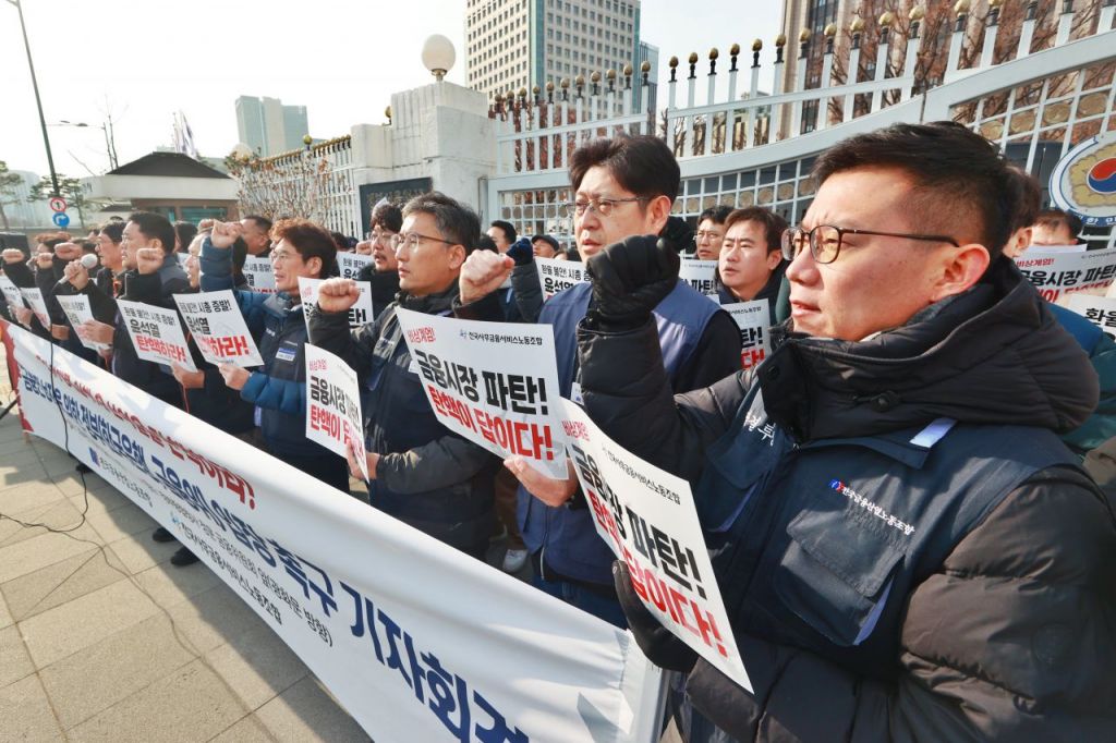 11일 전국금융산업노동조합과 전국사무금융서비스노동조합은 서울 종로구 금융위원회 앞에서 긴급 기자회견을 열고 이같이 주장했다.