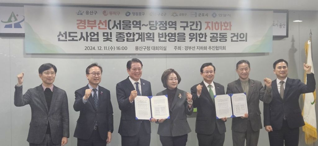 ‘경부선지하화협의회’에서는 유성훈 금천구청장을 비롯해 사업 구간을 지나는 서울 구로·동작·영등포·용산구와 경기도 안양·군포의 자치단체장 7명이 참석해 정부 선도사업 지정을 요구하는 한목소리를 냈다.