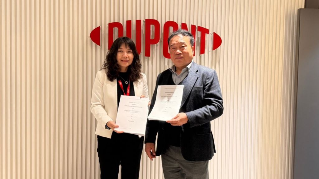 (좌)듀폰 생산&마케팅 디렉터 루시, (우)와이엠티 대표 전성욱. 와이엠티 제공.