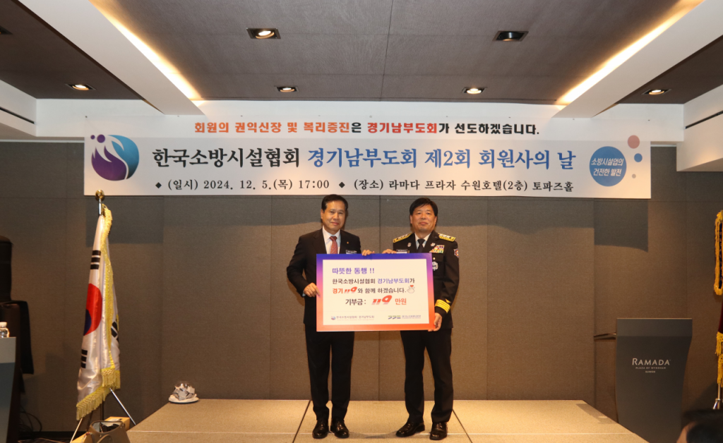 경기도소방재난본부의 이웃사랑 프로젝트에 한국소방시설협회 경기남부도회가 기부금을 전달했다.