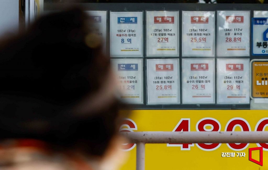 대출 규제 등의 여파로 아파트 거래가 위축되며 매물이 계속 쌓이고 있는 24일 서울 강남 한 부동산에 매매와 전세 매물 전단이 붙어 있다. 사진=강진형 기자