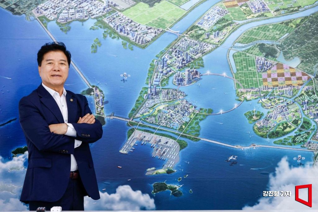 김경안 새만금개발청장이 30일 서울 중구 새만금 투자전시관에서 인터뷰에 앞서 포즈를 취하고 있다. 사진=강진형 기자aymsdream@