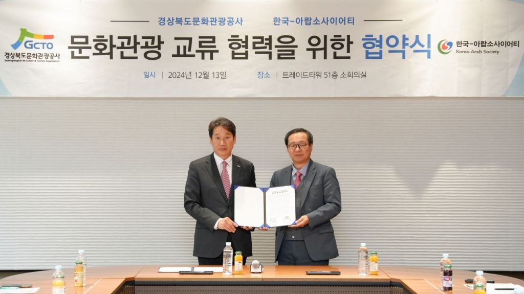 경북문화관광공사(사장 김남일)는 서울 한국무역협회 트레이드타워에서 한국-아랍소사이어티(사무총장 김창모)와 문화관광 분야 협력을 위한 업무협약(MOU)을 체결했다고 15일 밝혔다.