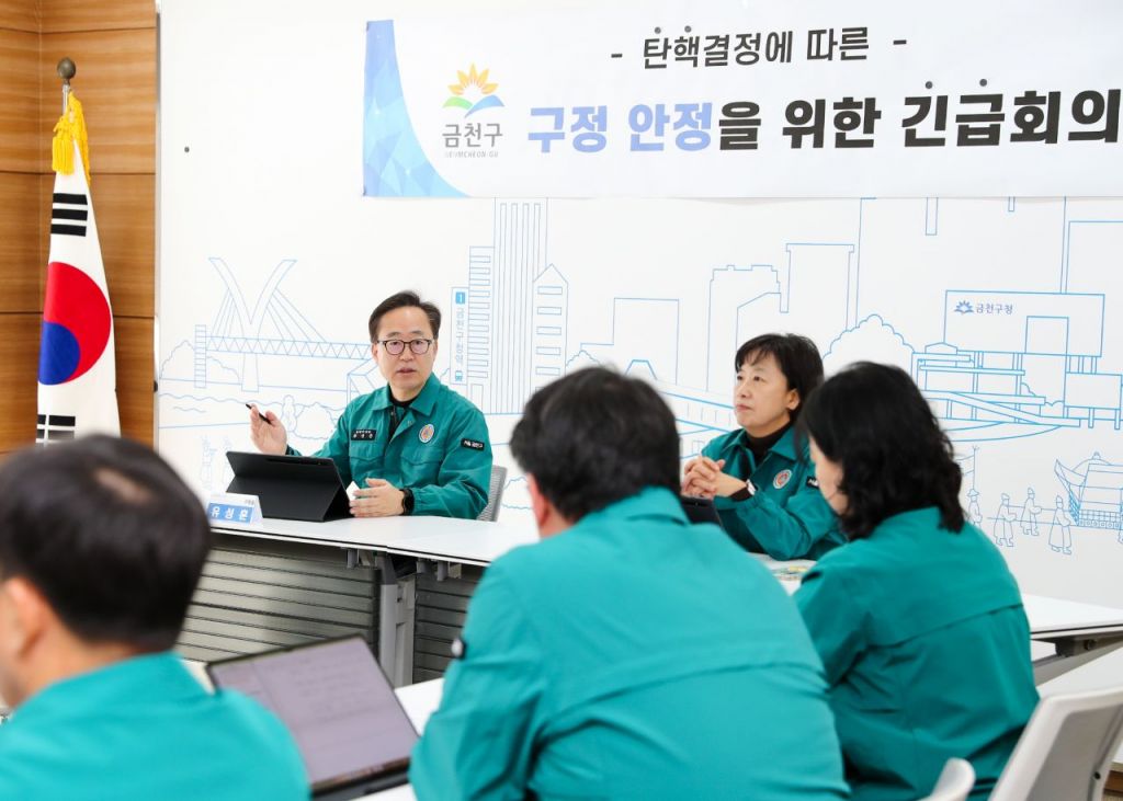 금천구(구청장 유성훈)는 국회의 탄핵소추안 가결에 따라 15일 오전 10시 금천구청 9층 소회의실에서 구정 운영 안정을 위한 긴급회의를 진행했다고 밝혔다.