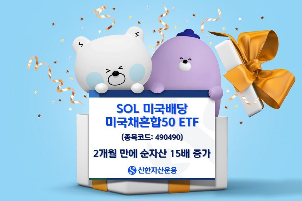 신한자산운용은 'SOL 미국배당 미국채혼합50' ETF 순자산 규모가 1500억원을 넘어섰다고 16일 밝혔다. 지난 9월 말 상장한 이후 약 2개월 만에 15배 이상 증가했다.