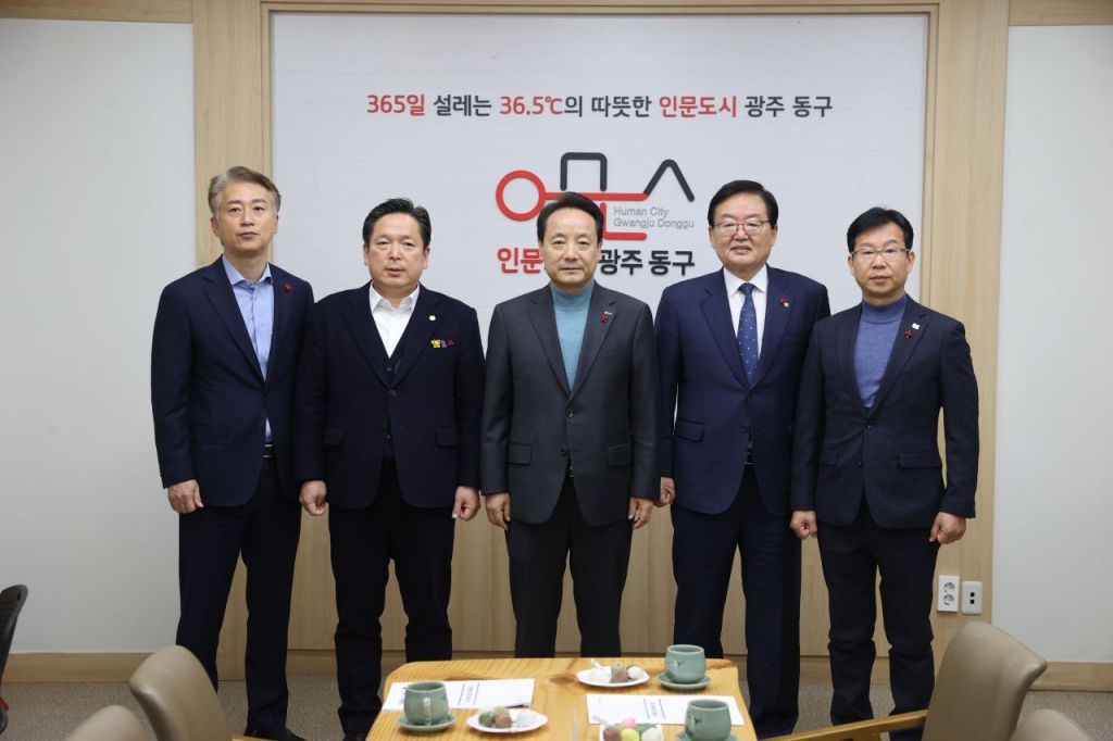 광주구청장협의회는 윤석열 대통령 탄핵안이 국회에서 가결된 이후 성명을 통해 골목 상권 활성화에 속도를 내겠다고 밝혔다. 사진 왼쪽부터 김이강 서구청장, 김병내 남구청장, 임택 동구청장, 문인 북구청장, 박병규 광산구청장. 광주구청장협의회 제공