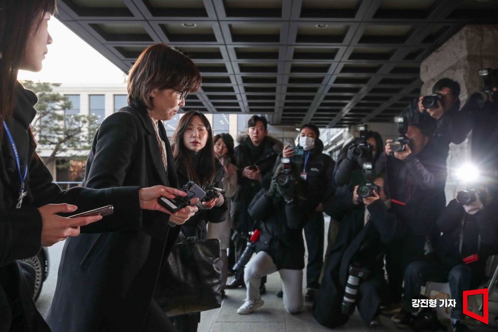 헌법재판소가 윤석열 대통령에 대한 본격적인 탄핵심판 심리를 앞두고 신속한 재판을 위해 관련 절차를 진행하고 있는 16일 서울 종로구 헌법재판소에서 이미선 헌법재판관이 재판소로 들어서고 있다.