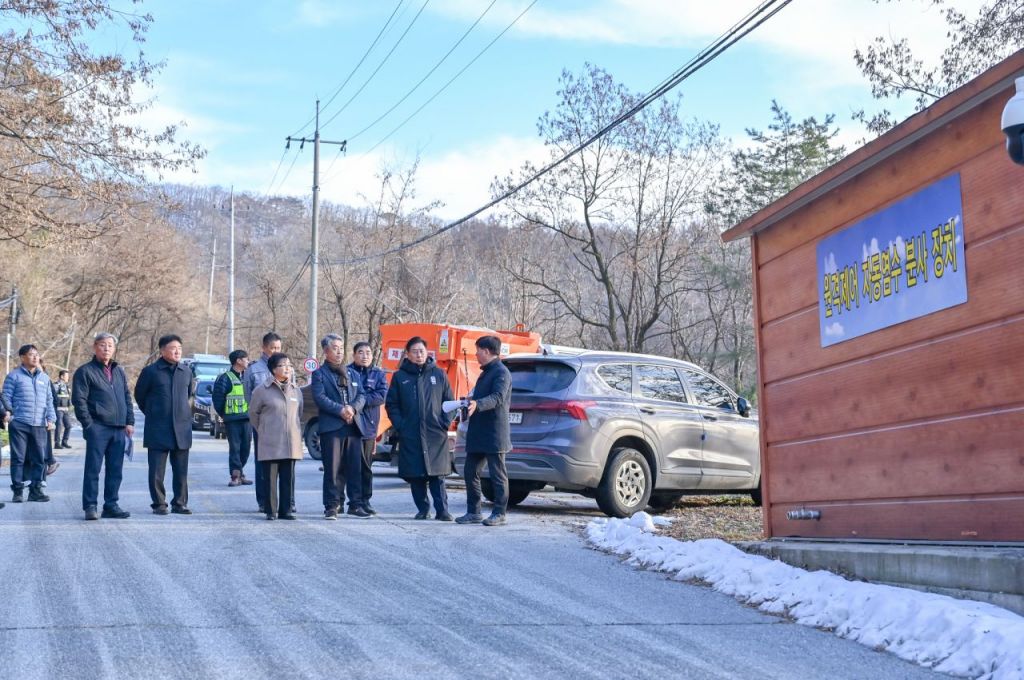 전진선 양평군수가 지난 9일 겨울철 강설에 대비해 군민들의 통행 불편을 최소화하고 안전한 도로환경을 확보하고자 옥천면 설매재 고갯길 제설취약구간에 설치된 자동염수분사장치 현장을 점검하고 잇다. 양평군 제공