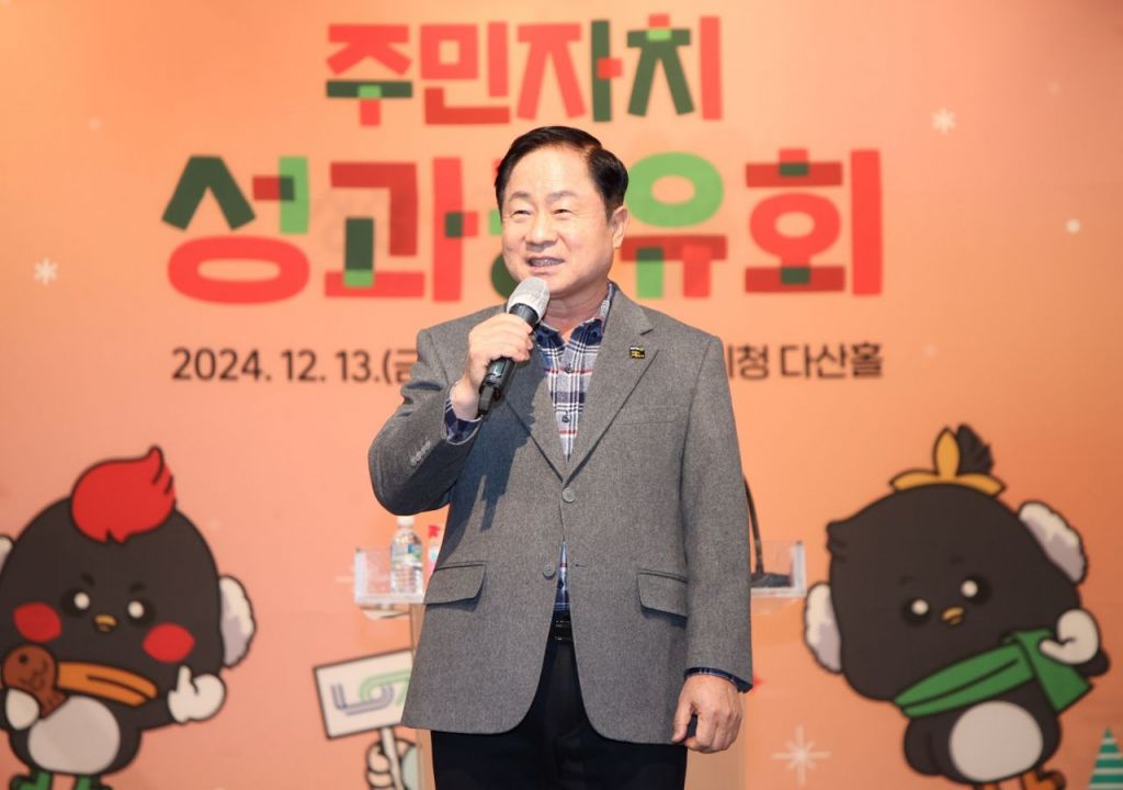 주광덕 남양주시장이 지난 13일 시청 다산홀에서 ‘2024년 남양주시 주민자치 성과공유회’를 개최하고 있다. 남양주시 제공