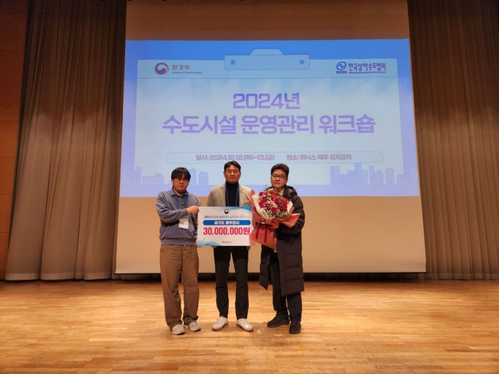 동두천시가 환경부에서 주관한 ‘2024년 일반수도사업 운영?관리 실태평가’에서 전국 ‘최우수 기관’으로 선정돼 ‘최우수 기관’ 표창을 수상하고 있다 동두천시 제송