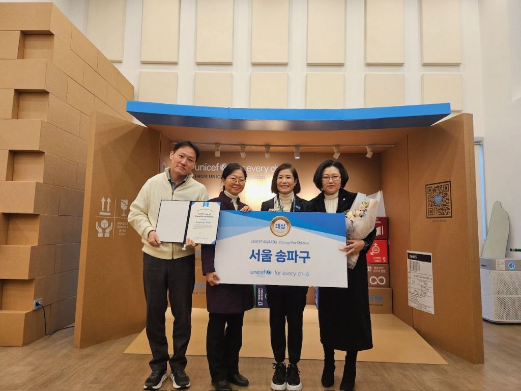 송파구(구청장 서강석)가 지난 12월 13일 유니세프 한국위원회 1층 체험관에서 열린 ‘2024 유니세프 어워즈’에서 전국 1위인 대상을 수상했다.