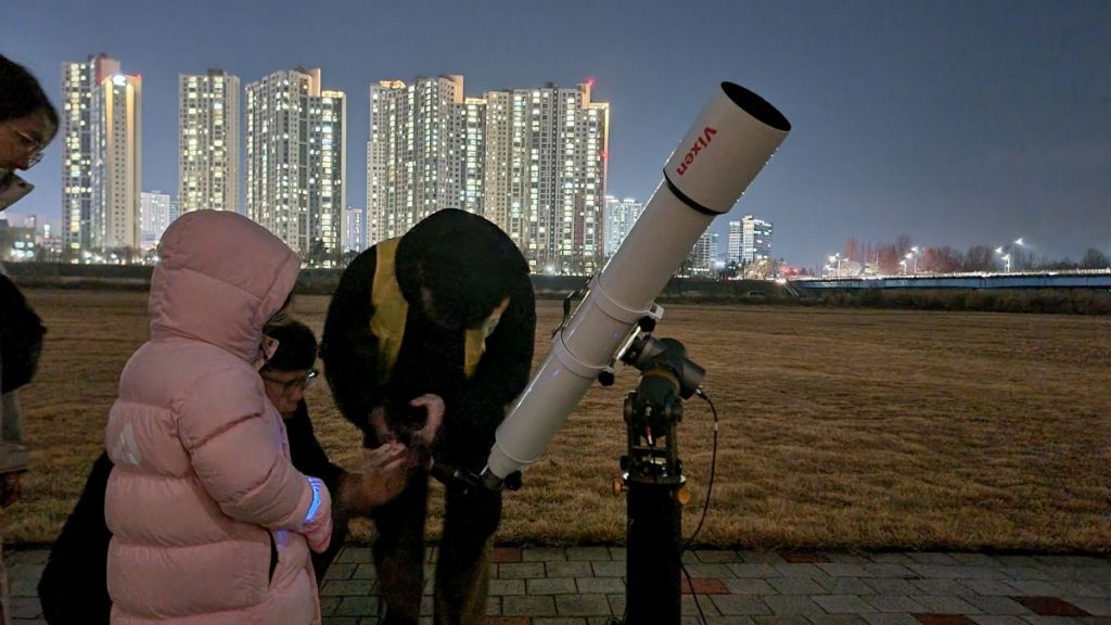 16일 광주과학관에 따르면 쌍둥이자리 유성우는 소행성이 우주에 흩뿌린 잔해대를 지구가 통과하면서 나타나는 유성우로, 매년 12월 이맘때 만나볼 수 있다. 이번 행사는 도심임에도 충분히 어둡고 시야가 넓은 영산강 수변공원 거징이쉼터에서 진행했다.