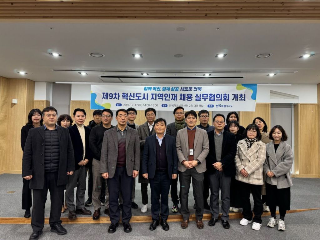 전북특별자치도는 17일 혁신도시 전북테크비즈센터에서 ‘제9차 혁신도시 지역인재채용 실무협의회’를 개최했다.