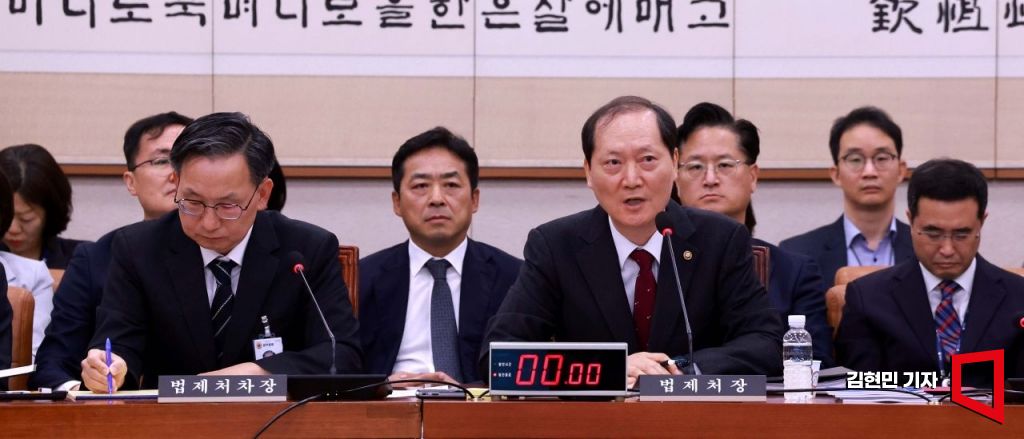 이완규 법제처장이 14일 국회에서 열린 법제사법위원회의 법제처에 대한 국정감사에서 의원 질의에 답변하고 있다. 사진=김현민 기자 kimhyun81@