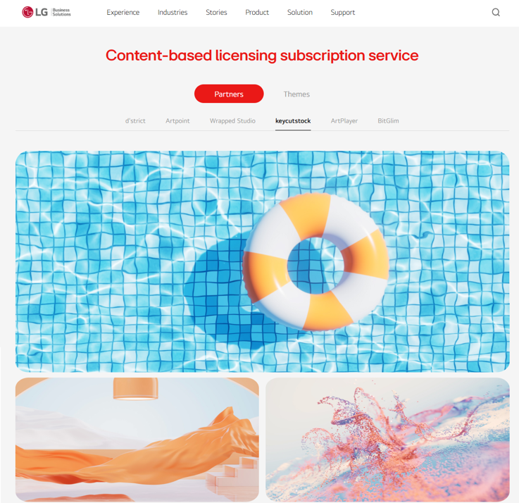 LG전자 ID사업부에서 제공하는 ‘미디어 아트 솔루션’은 LG전자에서 사이니지 장비를 구매한 기업 고객을 위한 비즈니스 솔루션 서비스다. 건물 1층 내부에 LG전자가 만든 초대형 LED 사이니지를 설치한 기업 고객이 LG 디지털 커넥트 웹사이트를 통해 해당 공간에 어울리는 수준 높은 미디어 아트 콘텐츠를 손쉽게 찾고 구매, 활용할 수 있도록 만든 서비스다.