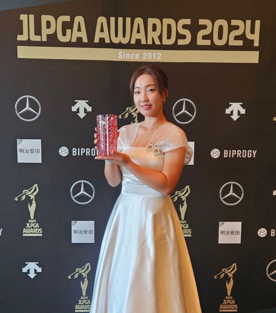 이효송이 JLPGA투어 시상식에서 역대 최연소 신인상을 받은 뒤 기념 촬영을 하고 있다. 사진제공=JLPGA