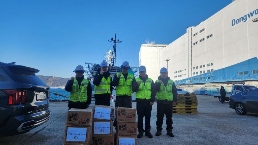 17일에는 부산항 북항, 신항, 감천항, 국제여객터미널에서 일하는 항만 근로자 2500여명에게 체온 유지에 도움을 주는 넥워머와 귀마개, 대용량 핫팩을 총 3만여개를 배부했다.