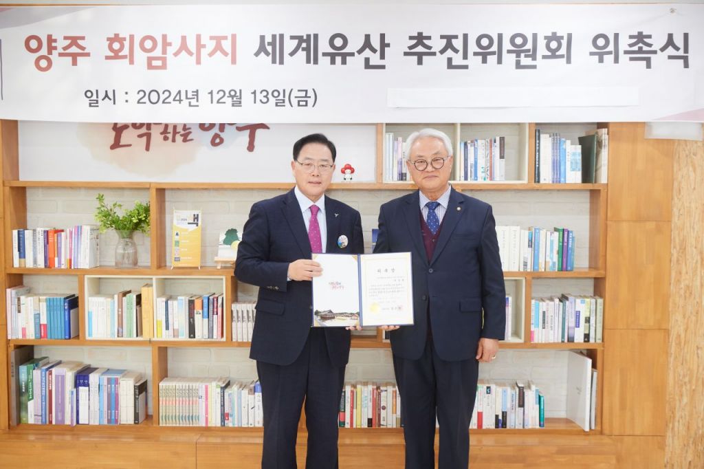 ‘양주시 세계유산 등재 및 보존·관리 등에 관한 조례’에 근거해 조직된 이번 위원회는 위원장으로 선출된 이상원 민주평통 양주시협의회장과 부위원장으로 선출된 이경미 (재)역사건축기술연구소 소장을 포함한 각계 전문가와 시의원, 지역주민 등 9인의 위촉직 위원과 당연직인 양주시 복지문화국장 등 총 10인으로 구성했다.