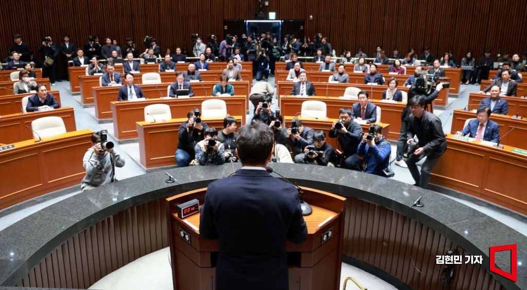 권성동 국민의힘 원내대표가 16일 국회에서 열린 의원총회에서 발언하고 있다. 김현민 기자