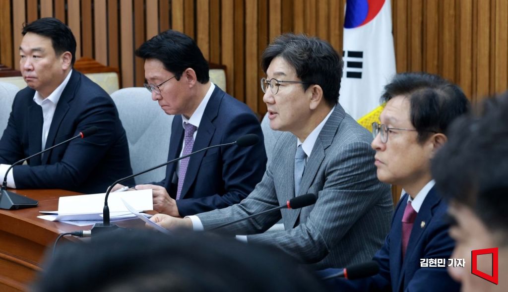 권성동 국민의힘 당대표 권한대행 겸 원내대표가 19일 국회에서 열린 원내대책회의에서 발언하고 있다.