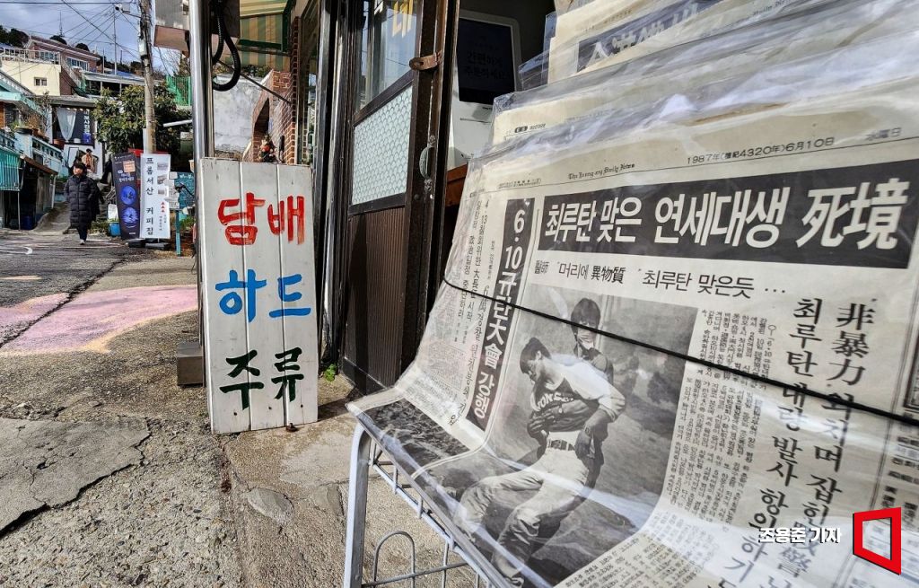 대한민국 민주화 운동을 상징하는 인물이 있다. 1987년 6월 9일 최루탄에 피격 당해 사망하면서 6월 항쟁의 도화선이 된 이한열 열사다. 그로부터 37년 후 국민들은 12.3 계엄사태에 맞서 또 한번 민주주의를 지켜냈다. 목포의 한 슈퍼에 진열된 37년 전 낡은 신문이 찡하게 가슴을 울린다. 민주주의 소중함을 다시 한 번 되새겨 본다. 조용준 기자