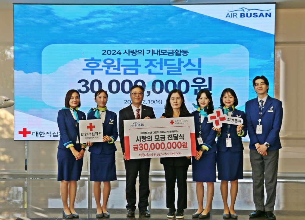 에어부산(대표 두성국)이 ‘사랑의 기내 모금활동’으로 마련한 3000만원을 대한적십자사로 기부하며 어려운 이웃들의 따뜻한 연말을 돕는다.