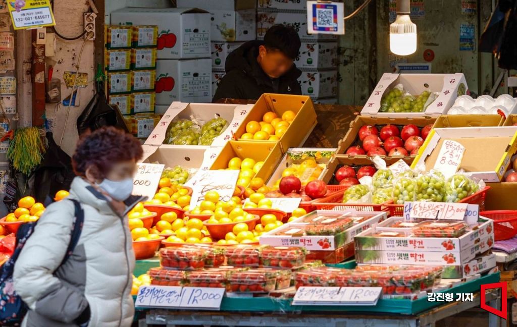기록적이었던 폭염의 영향으로 겨울철에 즐겨 먹는 감귤과 딸기 가격이 지난해보다 10% 넘게 상승한 20일 서울 동대문구 청량리청과물시장에서 상인이 손님을 기다리고 있다. 한국농수산식품유통공사(aT)에 따르면 감귤(노지) 평균 소매가격은 10개에 4천265원으로, 1년 전보다 18% 비싸며, 딸기 평균 소매가격은 100g에 2천532원으로 1년 전보다 14% 비싸고 평년보다 24% 올랐다.