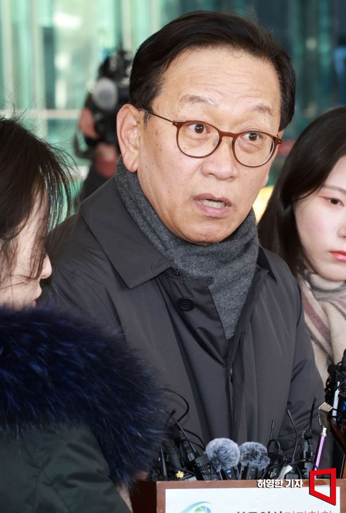 윤석열 대통령의 서울대 법대 동기이자 40년 지기인 석동현 변호사가 전날(19일) 서울 고등검찰청사 앞에서 기자들과 만나 윤 대통령에 대한 내란 혐의 수사와 탄핵 심판에 대한 입장을 밝혔다. 석 변호사가 기자의 질문에 답하고 있다. 허영한 기자