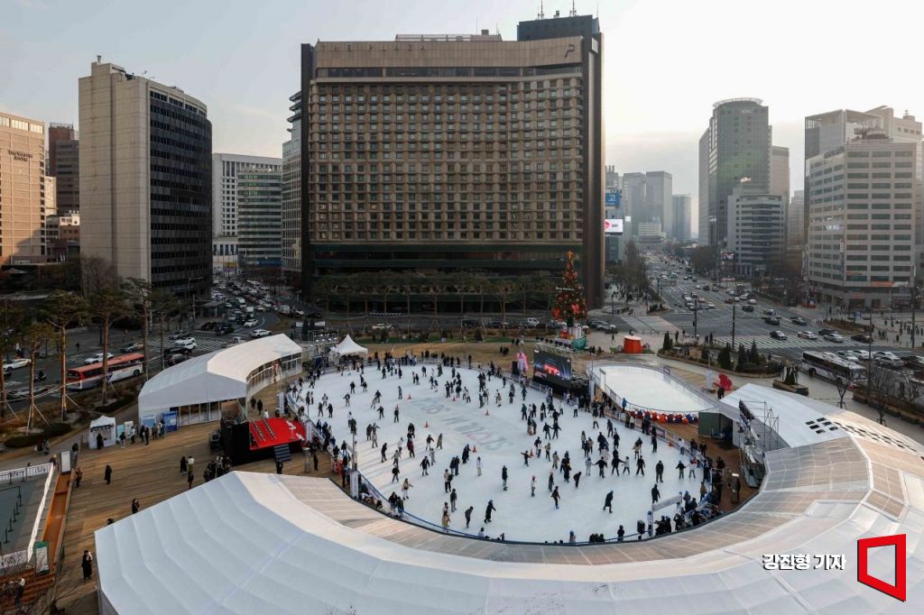 20일 서울 중구 서울광장에 마련된 야외스케이트장을 찾은 시민 및 외국인 관광객들이 스케이트를 타며 즐거운 시간을 보내고 있다. 서울시는 오늘부터 내년 2월 9일까지 52일간 서울광장 스케이트장을 운영한다고 밝혔다.