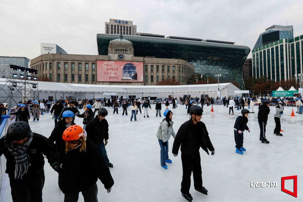 20일 서울 중구 서울광장에 마련된 야외스케이트장을 찾은 시민 및 외국인 관광객들이 스케이트를 타며 즐거운 시간을 보내고 있다. 서울광장 스케이트장은 오늘부터 내년 2월 9일까지 52일간 운영되며, 이용료는 올해도 변함없이 1000원이다. 강진형 기자