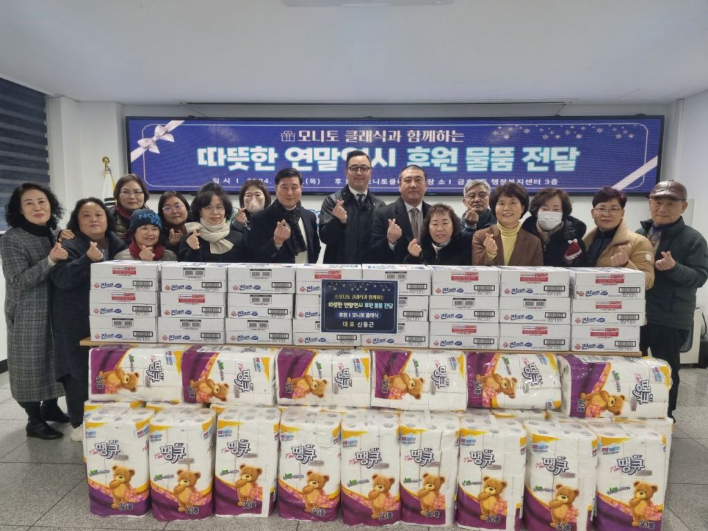 또 지난 19일 맞춤형 정장 제작업체인 모니토 클래식(대표 신동근)에서 라면 25박스와 화장지 25팩을 어려운 이웃을 위해 써달라며 물품을 후원했다.