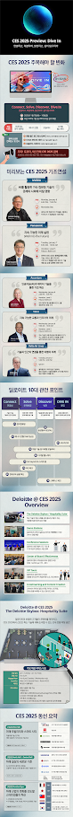 내년 세계 최대 전자·정보기술(IT) 전시회 CES 2025가 내년 1월7일부터 10일까지 미국 라스베이거스에서 열리는 가운데, 한국 딜로이트 그룹이 'CES 2025 Preview' 보고서를 23일 전격 공개했다.