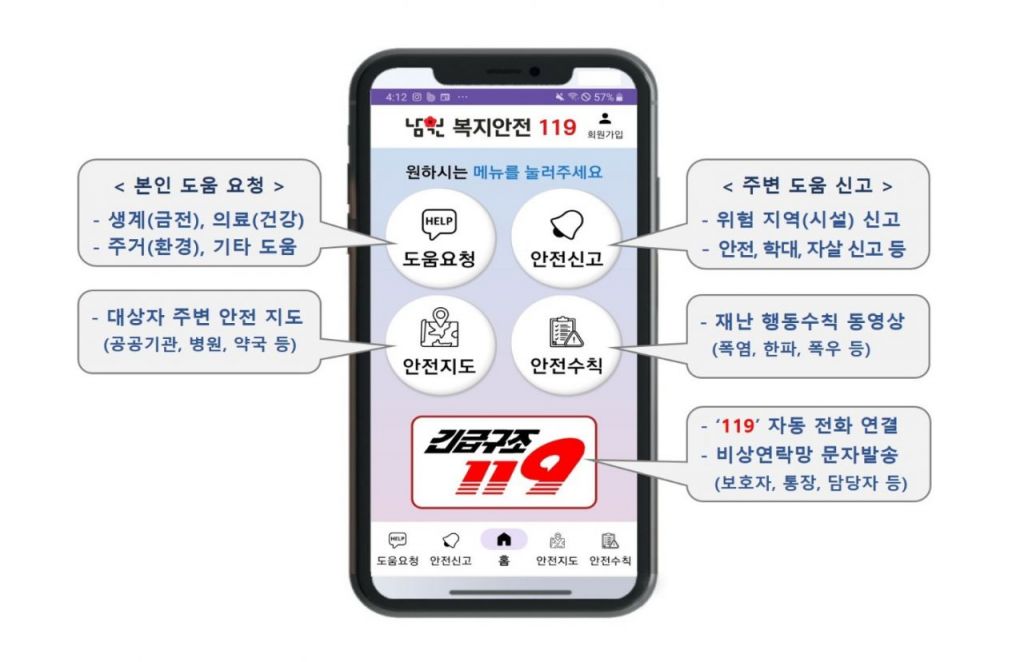 남원 복지안전 119 앱. 남원시 제공