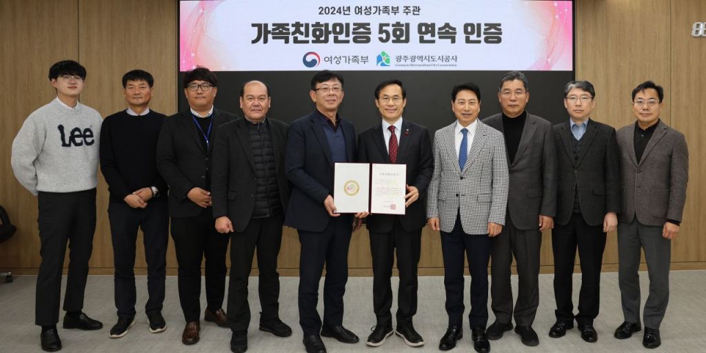광주도시공사가 여성가족부 주관 ‘가족친화기관’ 재인증을 받았다고 23일 밝혔다. 지난해에도 가족친화인증기관으로 인증된 광주도시공사는 12년간 인증 자격을 유지하게 됐다.